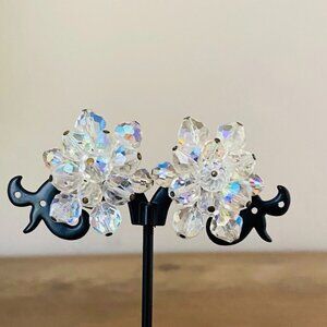 Vintage AB Aurora Borealis Cluster Clip-on Earrings