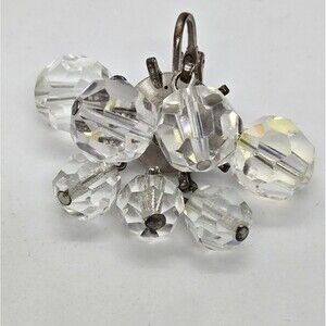 Vintage AB Crystal Cha Cha Clip-on Earrings Silver tone