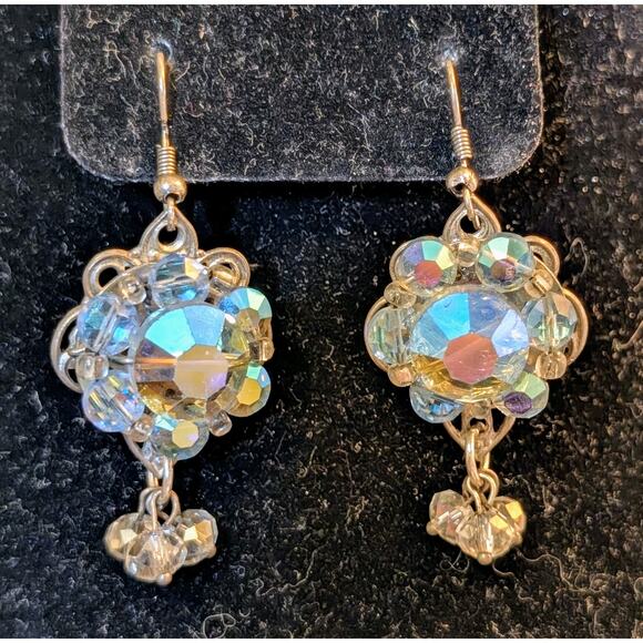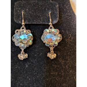 Vintage AB Crystal Three Clear Crystal Dangle Pierced Earrings