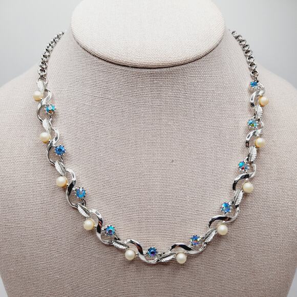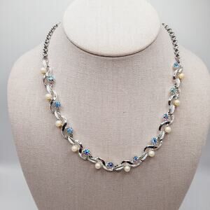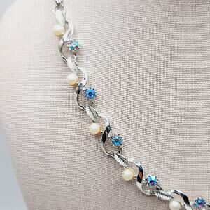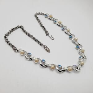 Vintage AB Rhinestone Faux Pearl Choker Necklace 18 Inch
