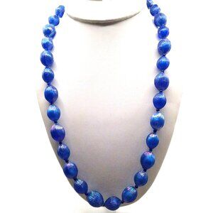 Vintage AB Royal Blue Necklace, Lovely Aurora Borealis Fluted Oblong Plastic Beads Sparkle and Shine