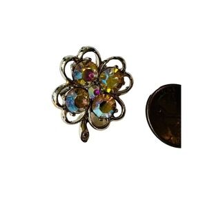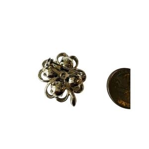 Look at this cute flower-shaped brooch, covered with rhinestones in reflective tones that sparkle. In excellent condition.