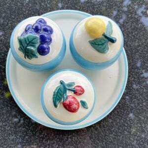 Add a touch of vintage charm to your kitchen with this beautiful set of jam jars from The Abingdon Co. The round jars come in a set of three and feature a lovely fruit pattern in shades of blue, with grape, strawberry, and lemon designs. Made of high-quality clay, these jars are perfect for storing your favorite jams and preserves.