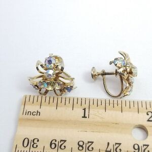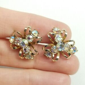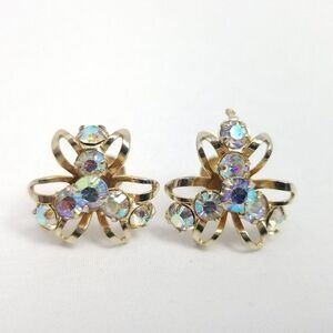 Vintage AB Rhinestone Clip On Earrings, Gold Tone Screw Back Setting, Retro