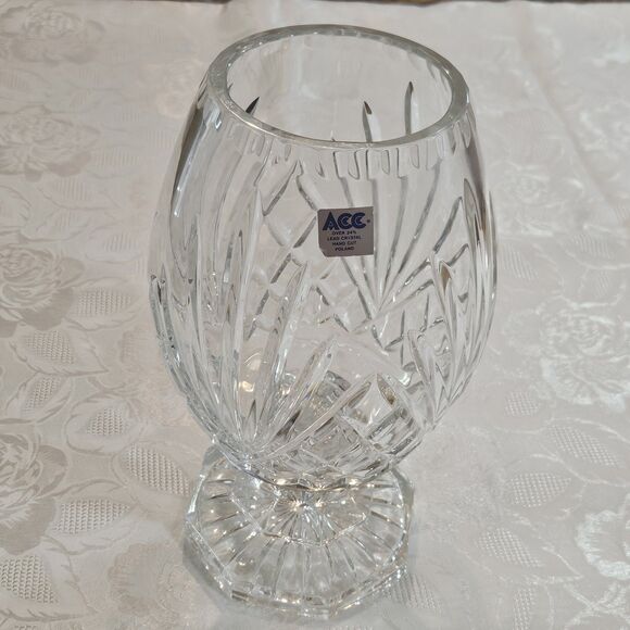 Vintage ACC Vase Hand Cut Lead Crystal 24% Poland Heavy 10.5x6.5”