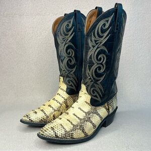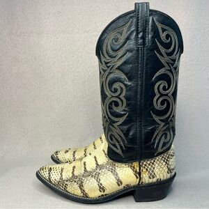 Vintage ACME Leather & Snakeskin Western Cowboy Boots-Black/Cream-Mens 9-Classic