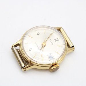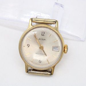 Vintage ACQUA Automatic Watch Womens Gold Tone Stainless Steel Date Beige Dial