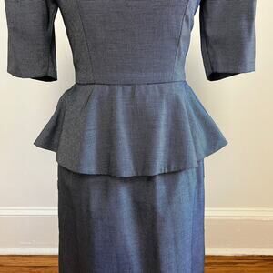 Vintage ACT 1 New York Peplum Pencil Midi Dress Puff Sleeves Collared with Tie 2