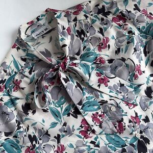 Vintage ACT III Button Up Blouse Tie Neck Secretary Floral Print Women’s Size L