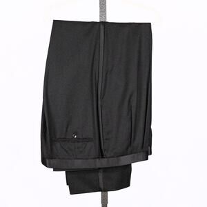 Pre-Owned Vintage (Excellent Condition): Union Made (ACTWU) Pierre Balmain Double Breasted Tuxedo (Jacket & Pants); Estimated Size Based on Measurements: 48 Regular **Based on Measurements**; 100% Wool; Tailored in USA; Satin Lapel and Satin Covered Buttons;