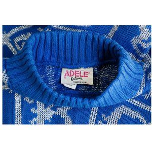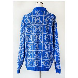 Vintage Adele Knitwear 80's 90's Blue Silver White Alphabet Sweater