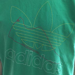 Vintage ADIDAS Embroidered TREFOIL 100% Cotton Short Sleeve T Shirt Large Condition : Excellent Used Condition Color : Kelly Green With Embroidery on Front Print Trefoil on Back Material : 100% Cotton Manufacturer : Adidas Size : Adult Large Measurements - Taken Laying Flat Arm pit to Arm pit - 24" Shoulder Seam to hem - 30"