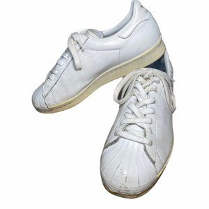 Vintage ADIDAS Mens 7.5 Preppy Forest Gump White Leather Shell Toe Sneakers