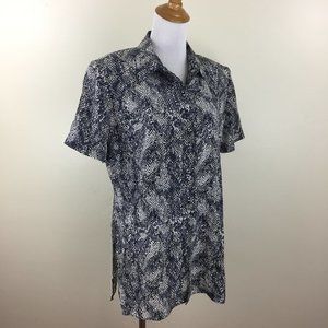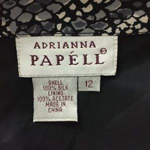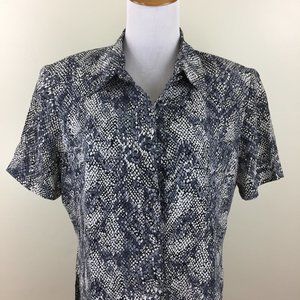 Vintage ADRIANNA PAPELL 100% Silk Gray Black White Snake Print Button Slit Shirt