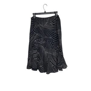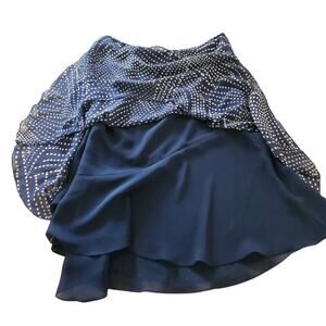 Vintage 90s ADRIANNA PAPELL Navy Blue Dotted 100% Silk Midi Flared Flouncy Asymmetrical Skirt Size 12 Large. Fully Lined. Side Zipper. Lightweight. Excellent Vintage Condition.