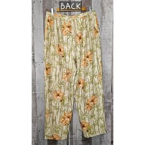 Vintage ADRIANNA PAPELL Silk Tropical Flower Beaded Lined PANTS Women's size 16