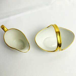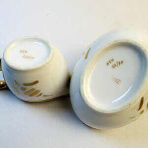Vintage AEH Japan Porcelain Small Creamer & Basket Set Gold Accents Marked 1930