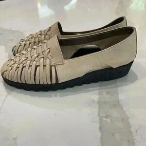 Vintage AEROSOLES Ivory Weaved Leather Flat Sandal Shoes