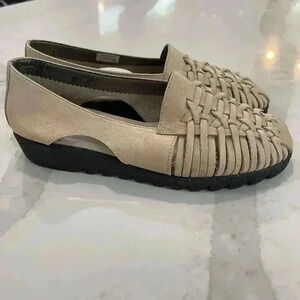 Vintage AEROSOLES Ivory Weaved Leather Flat Sandal Shoes Women 8 Casual Everyday