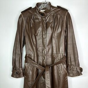 Vintage A&F Originals Brown Trench Jacket Size 8 19” Pit to pit 17” Waist 45” Length 22” Sleeve Length 16” Shoulder Width Preowned condition See last five images for minor flaws. Ask if you have any questions or need additional measurements.