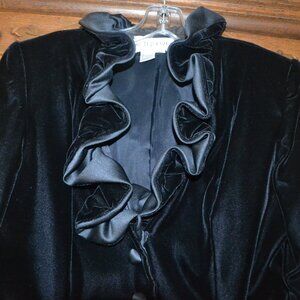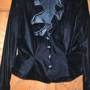 Vintage AFTER FIVE Black Velvet Blazer Jacket Formal Ruffle Jacket Size 10