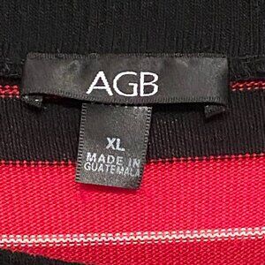 Vintage AGB Boat Neck Lightweight Knit Top Striped Reds/Pinks/Black Size (XL). Very comfy and flattering fit top with plenty of stretch.