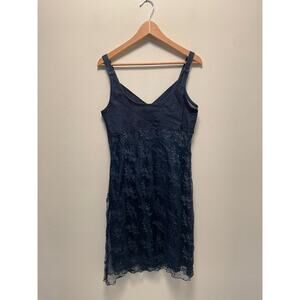 Vintage AGB Womens Dress 12 Denim Lace Contrast Strappy Stretch Whimsigoth Y2K