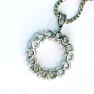 Vintage AGI Italian 925 Sterling Silver Necklace Circle Pendant With Crystals