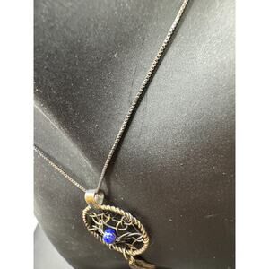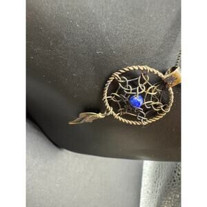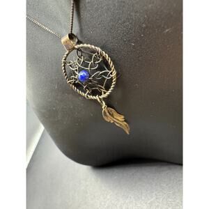 Vintage AGI Italy Signed Sterling Silver 925 Lapis Lazuli Dreamcatcher Necklace