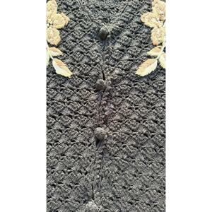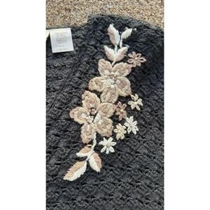 Vintage AGW Division of Graff Black Open Knit Cardigan XL Floral Embroidered