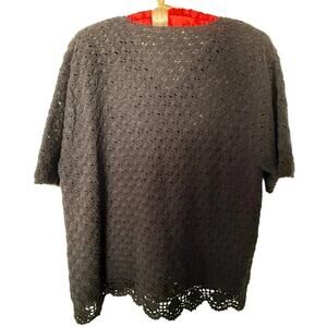 Vintage AGW Division of Graff Black Open Knit Cardigan XL Floral Embroidered Ramie Cotton