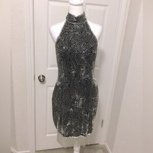 Vintage AJ Bari Black Sequin Sleeveless Dress Size 10