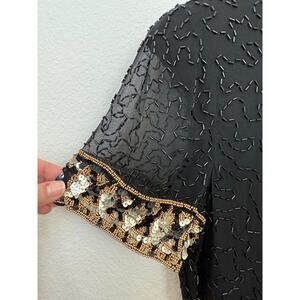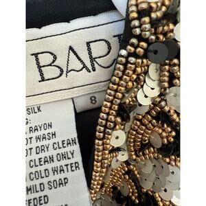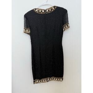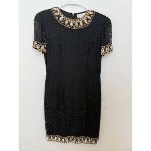 Vintage A.J. Bari Black and Gold Beaded Silk Dress Knee Length 8