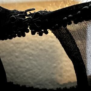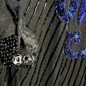 Vintage A.J. Bari Dress Sequin Beaded Evening 80s Slit Zip Closure Blue Black 6