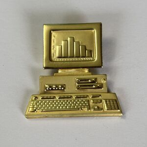 Vintage AJC Home Computer PC Figural Gold Tone Brooch 2 inches