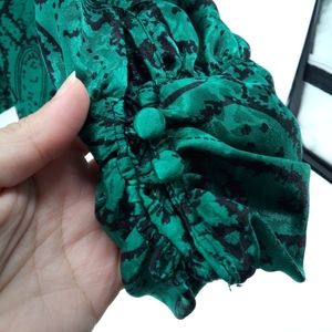 Vintage AK Collectible Made in Korea Green Shiny Paisley Halloween Blouse 12