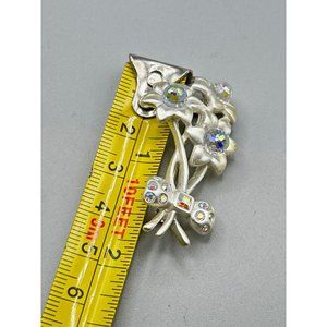 Vintage AK Flower Pin Brooch Anne Klein Matte Silver Tone & AB Crystal Stones
