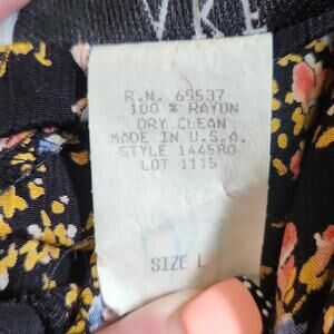 Vintage A.K.F. FOR MS ITERPRET Black Floral Textured Blouse Shirt XL Cottagecore