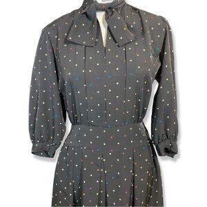 ⭐️Vintage ALBERT NIPON 1970s/80s Petites Neck Bow A-Line Polka Dot Dress