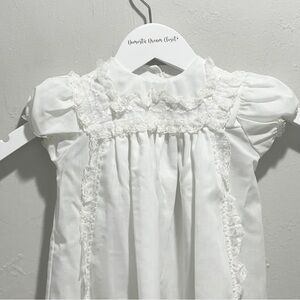 Vintage ALEXIS White Baptism Christening Long Gown Dress Lace USA 12 Months