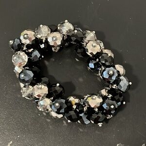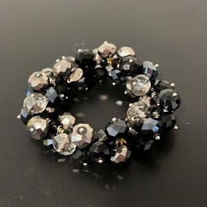 Vintage ALI KHAN New York Bracelet Cluster Black Clear Glass Beads Stretch