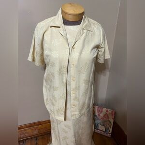 Vintage ALI MILES Button Front Shirt and Midi Dress Leaf Print Set Silk Size S