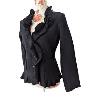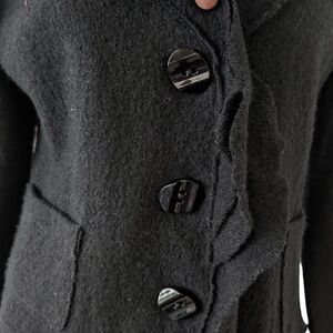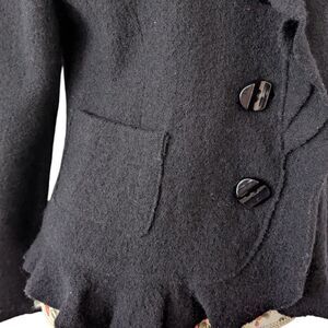 Vintage ALISON SHERI Sz M Black Boiled Wool Witchy Whimsy Goth Boho Cardigan EUC
