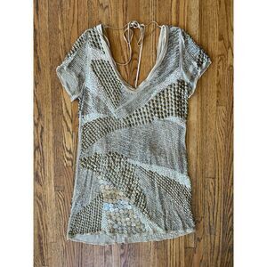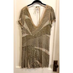 Vintage ALLSAINTS Beige Gracious Heavy Beaded Mini Dress Women's Size 8