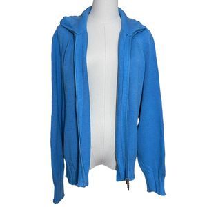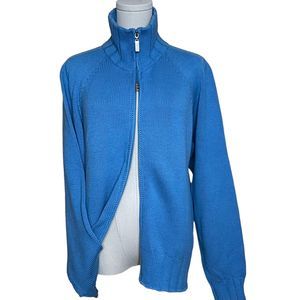 Vintage ALPS Knit Full Zip Sweater Cardigan Women's L Blue 100% Cotton High Neck