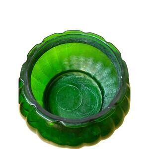 Vintage A.L.R. Co. Translucent Emerald Green Glass Ribbed Bubble Flower Bowl