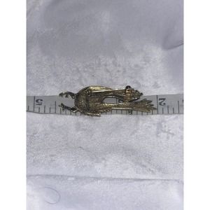 Vintage AMBASSADOR- Gold Tone Roadrunner Bird Green Gem Eye Brooch Pin- 2.5”
