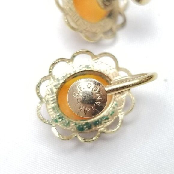 Vintage AMCO 14k Gold Filled Carved Shell Cameo Clip On Screw Back Earrings