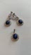 This elegant jewelry set features a stunning blue stone set in a silver design. Perfect for adding a touch of sophistication to any outfit. This set is in great condition for vintage. I believe this is 14k white gold overlay and I imagine the stones are lab created.