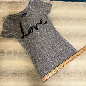 Vintage AMERICAN EAGLE XS Heather Gray Short Sleeve Ribbon “Love” Baby Tee Y2K